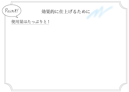 例えば、節約して1/2の量を2回に分けて使用するより、1回でたっぷり使用するほうが有効成分の働きが良くなります。塗るときは、髪の毛一本一本の根元から毛先まで、しっかりコーティングするイメージで。仕上がりが良くない理由は、量が少ないか、塗り方が部分的かの場合がほとんどです。
