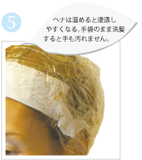 生え際にティッシュを置きラップで頭全体を包み、更にシャワーキャップを被り頭皮を温めます。約40分後、シャンプーで洗い流して、ドライヤーで乾かしたら終了です。(2度染めされる場合は湯洗いのみ)